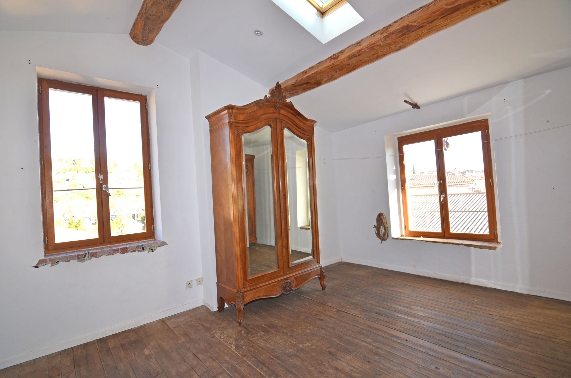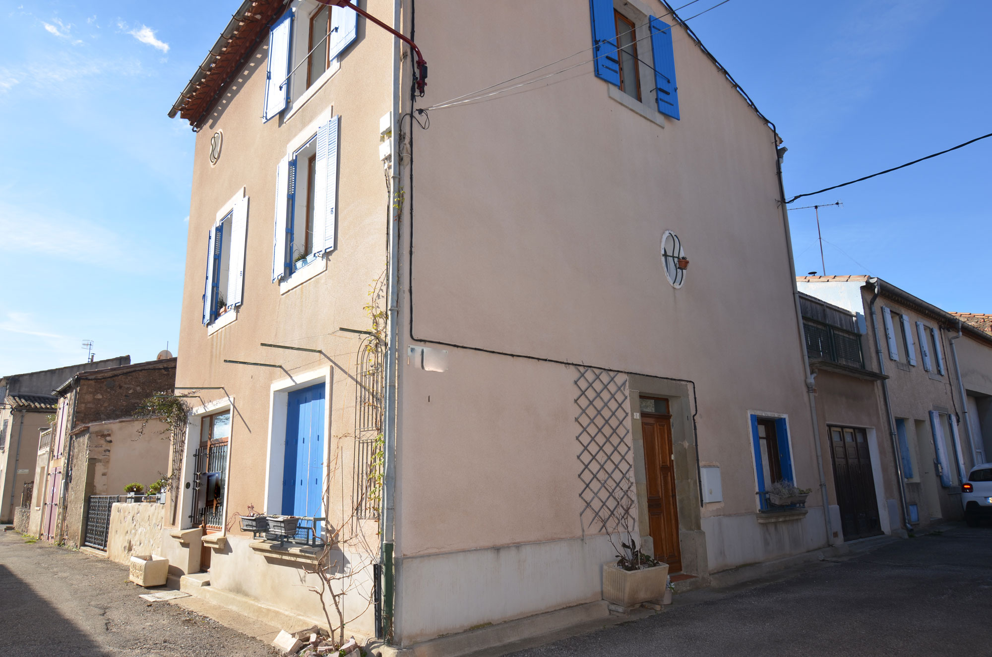 À Caunes-Minervois, dans un quartier calme, une maison en pierre rénovée sur trois niveaux avec garage, terrasse et appartement indépendant. Belle vue dégagée.